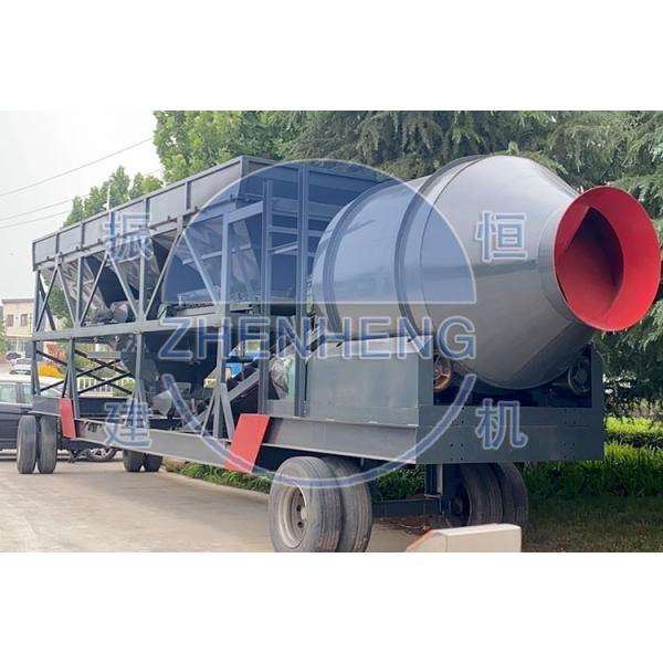 Zhenheng YHZG Series mobile concrete batching plant with drum mixer, which is self-falling type bipyramid reversed discharging concrete mixing machine.